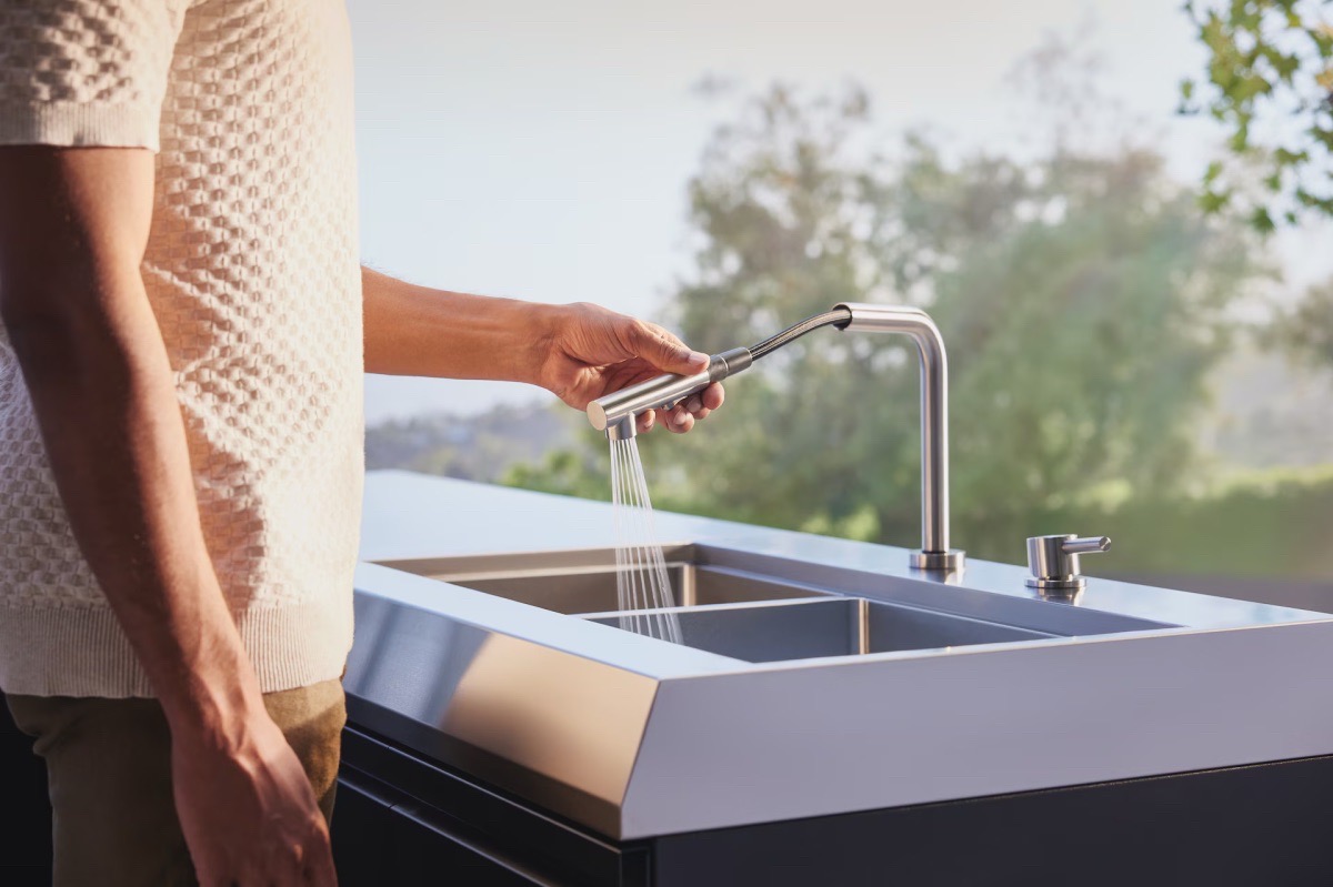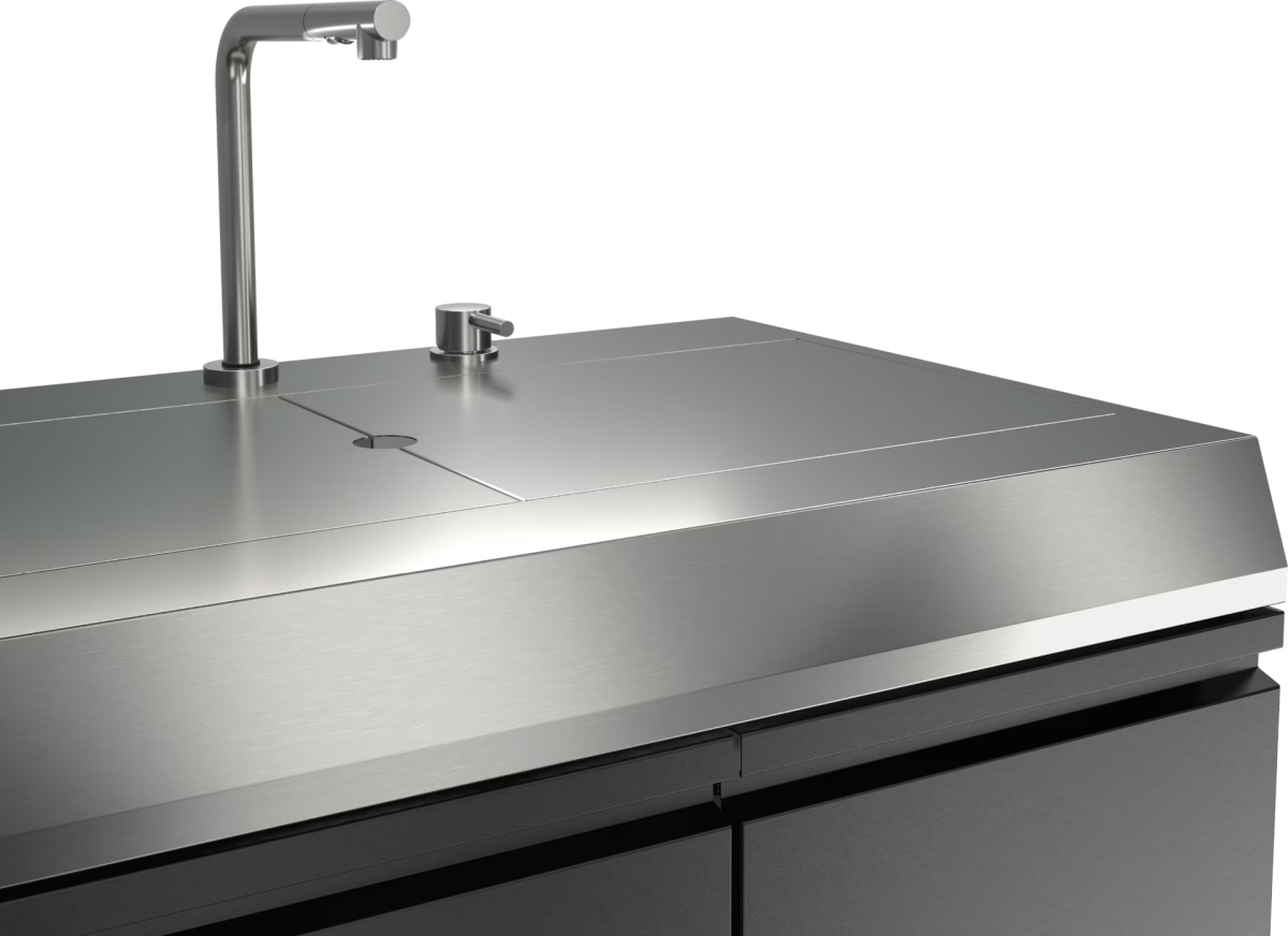 с мойкой, выдвижным смесителем и выдвижной системой разделения сточных вод.