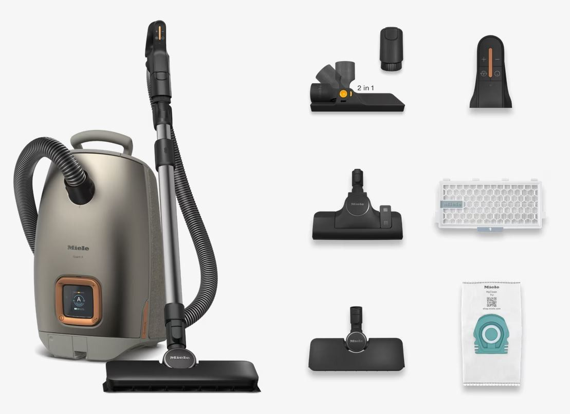 Пылесос Miele Guard L1 Comfort Titanium PF создан для тех, кто ценит аккуратность, функциональность и продуманный немецкий дизайн: серебристый корпус компактных габаритов (ширина 500 мм, высота 239 мм) и небольшой вес 6,5 кг обеспечивает удобство при хранении и перемещении, а опоясывающий бампер защищает мебель и стеновые покрытия во время уборки. Аппарат предназначен исключительно для сухой уборки и оснащён мощным двигателем PowerLine с максимальной мощностью 890 Вт, электронная регулировка силы всасывания даёт шесть рабочих режимов, что позволяет точно подбирать интенсивность для разных поверхностей и задач.