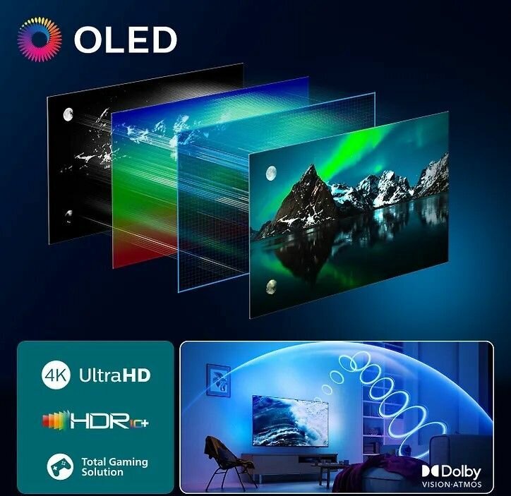 OLED-телевизор Ambilight обеспечивает кинематографический эффект при просмотре всего контента. Яркий OLED-дисплей обеспечивает реалистичное изображение при любом освещении, а искусственный интеллект использует систему P5-image system для обеспечения того, чтобы изображение всегда казалось реалистичным. Режиссерское видение - это благодарность Dolby Vision всем участникам сцены, а совместимость Dolby Atmos и DTS: X выводит звук на совершенно новый уровень.