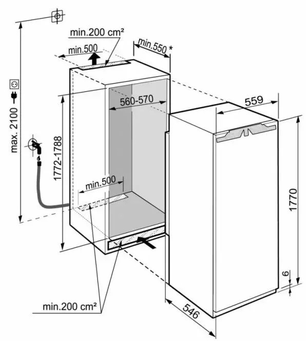Встраиваемый прибор проще разместить в комнате, даже если общий метраж не такой уж большой. Вы можете спрятать его за декоративной панелью от мебельного фасада — советуем заранее определить нишу и заказывать панели исходя из типа крепления к двери. Способ монтажа в данной модели: жесткое крепление (система door on door) Вы можете поменять направление открывания двери, так как упор переставляемый и ее можно перевесить на другую сторону. Такая функция открывает больше возможностей для установки. Холодильник без морозильной камеры имеет свои преимущества: больше места для хранения продуктов краткого срока годности, разнообразие полок и ящиков для овощей, фруктов, молочных изделий. Количество камер: 1.