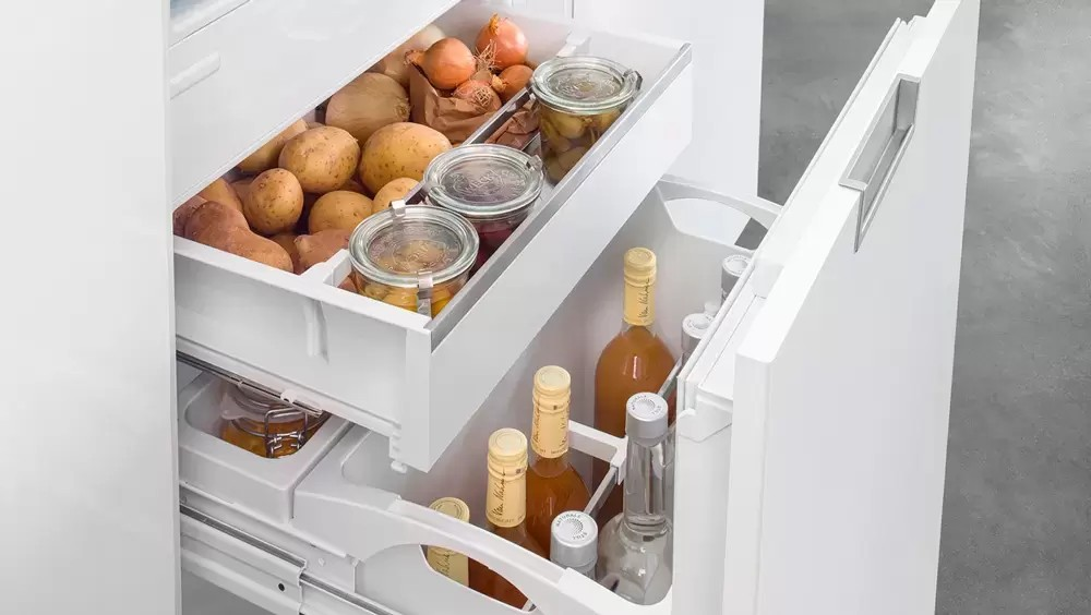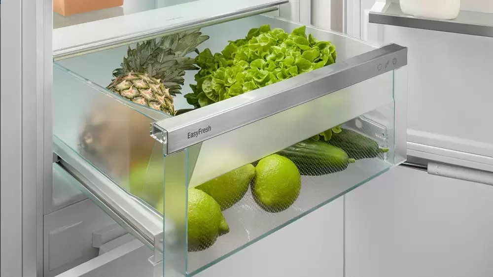 Технология BioFresh в холодильниках Liebherr позволит сохранить свежесть продуктов намного дольше, чем в обычной холодильной камере. Вы можете хранить фрукты, овощи, мясо, рыбу, сыры и молочные продукты, используя два режима: DrySafe с пониженной влажностью и HydroSafe с высоким уровнем влажности. Для регулировки влажности предназначается специальная заслонка: когда она закрыта, влажность соответствует максимуму, а в открытом положении влажность минимальна. В отделении BioFresh поддерживается температура около 0°C, позволяющая хранить продукты, не замораживания их.