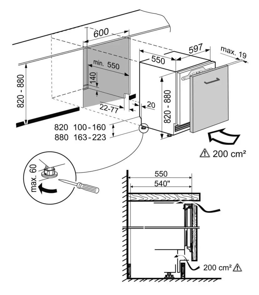 Устройство без морозильника в стальном корпусе высотой 82 см имеет общий объем 36 литров. Его особенность — оригинальная конструкция двери с выдвижной тележкой. Модель оснащена режимом автоматического суперохлаждения SuperCool, при выборе которого температура в холодильной камере понижается до +2 °С и остается на этом уровне в течение 12 часов, что особенно удобно при загрузке большого количества свежих продуктов. Сигнальный датчик открытой двери срабатывает автоматически через 60 секунд, так что продукты не успевают нагреться. Цокольная панель Vario позволяет отрегулировать встраиваемую холодильную камеру при установке под столешницу по высоте и глубине. Высоту каждой из ножек можно изменить максимум на 60 мм, а вентиляционную решетку сдвинуть в пределах до 55 мм. Ящик LiftUp не только легко извлекается, но и способен выдерживать вес продуктов до 4 кг. Закрытая электронная панель управления с кнопками и ЖК-дисплеем MagicEye предусматривает цифровую регулировку температуры от +2°C до +9°C. Полки из закаленного стекла выполнены в дизайне Premium GlassLine. Светодиодное потолочное освещение отличается долговечностью и гарантирует отличный обзор.